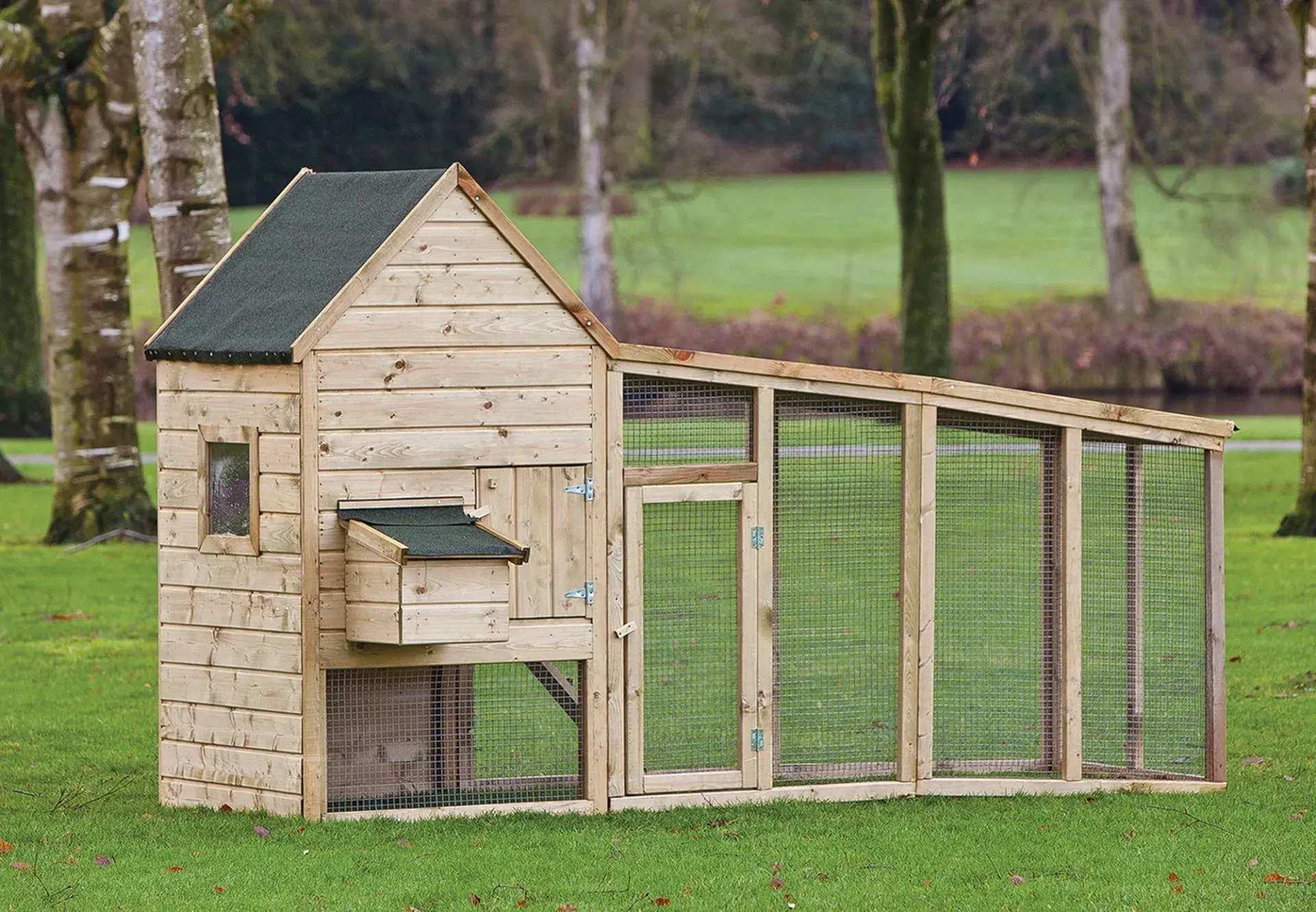 De Chabo dierenverblijf is de perfecte toevoeging aan uw tuin voor het houden van kippen. Met een afmeting van 100 cm breed, 300 cm lang en een nokhoogte van 170 cm, biedt dit dierenverblijf voldoende ruimte voor uw gevederde vrienden. Het houten verblijf is gemaakt van vurenhout en is geïmpregneerd voor een langere levensduur.
