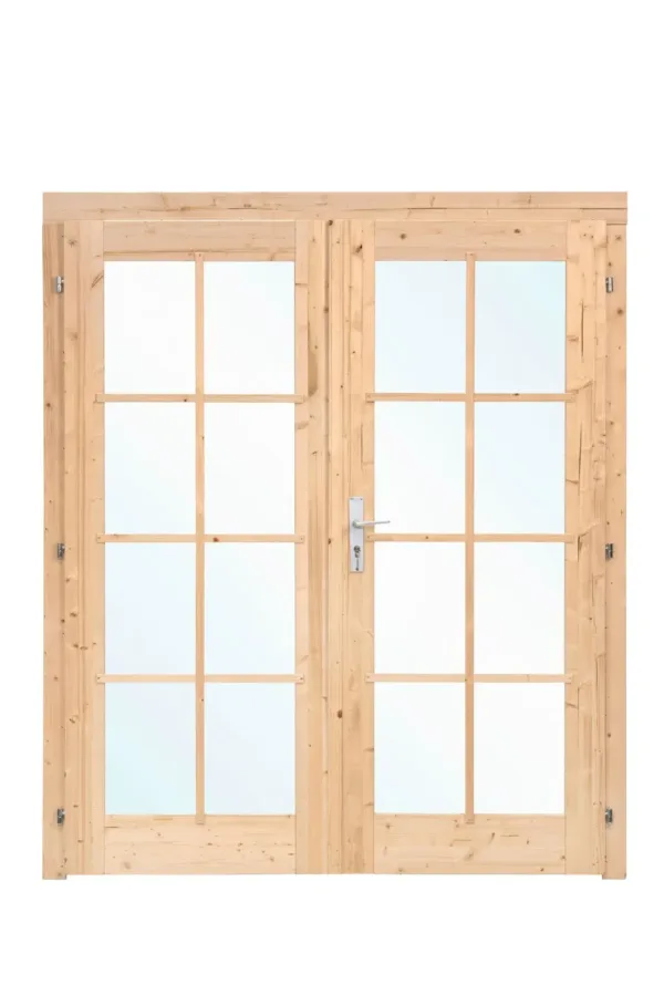 Deze prachtige houten blokhut met dubbele deur en kozijn is vervaardigd van hoogwaardig vuren hout en voorzien van enkel glas D2. Met een breedte van 159 cm en een hoogte van 190 cm biedt deze blokhut voldoende ruimte en lichtinval voor diverse activiteiten.